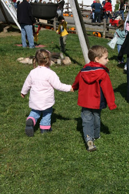 B'en oui je sais... demander moi pas pourquoi j'ai pas beaucoup de photo de pommes ou de cueillettes de pommes. Je crois que j'étais trop occupée à essayer de trouver une... d'échelle ou que j'étais sur les épaules de mon chum à essayer de cueillir les plus belles. Au moins, j'ai pris Célia et son cousin Benjamin appréciant leur journée.